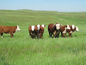 This land adjoins the pasture where the cows graze. We call it The Breaks because, geologically, it is a type of badlands that are rough, dry, clay or shale areas that erode and break away. Right now, it is covered in tall, green grass, but it quickly goes dry and brown. For now, it's a beautiful sight.